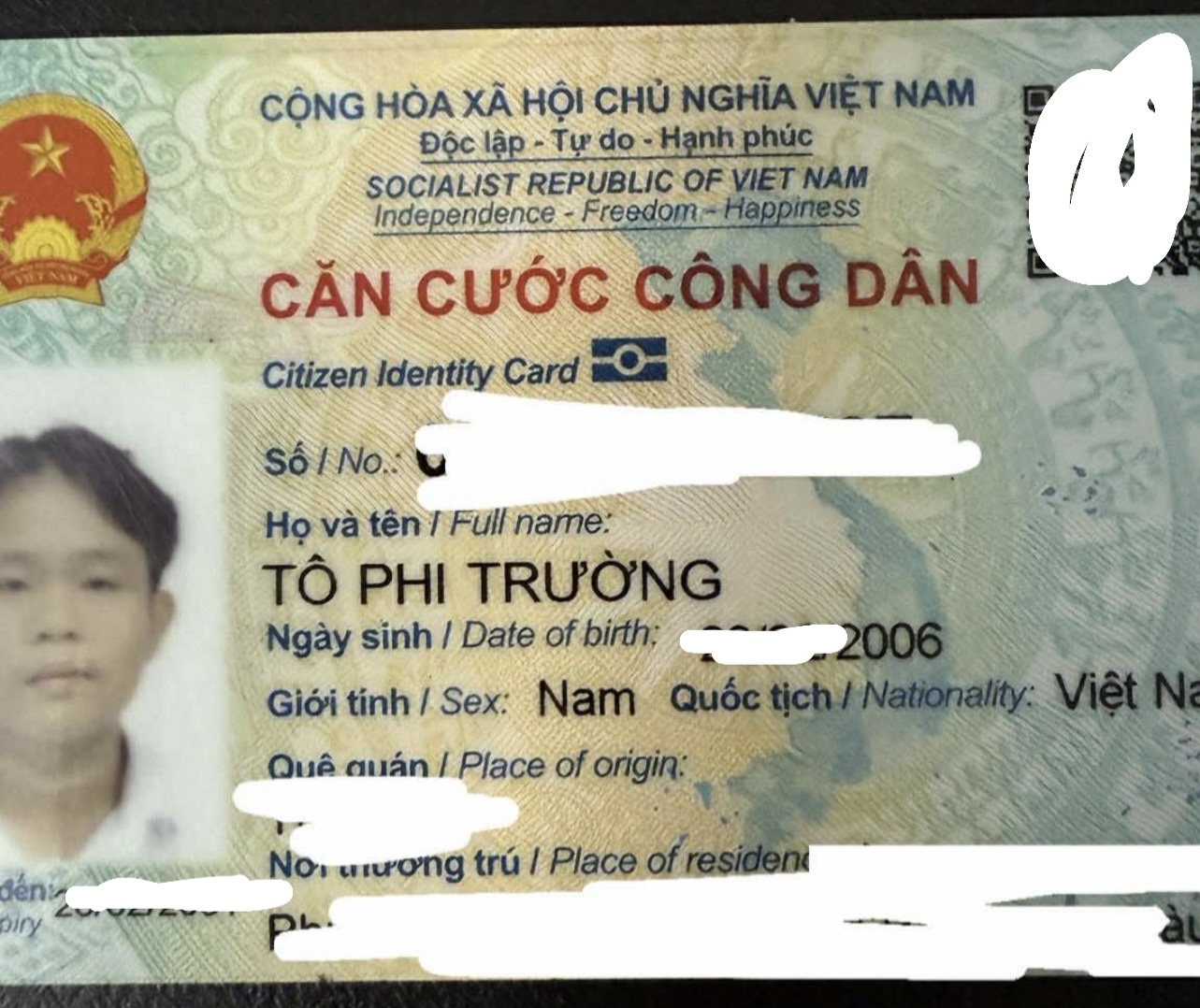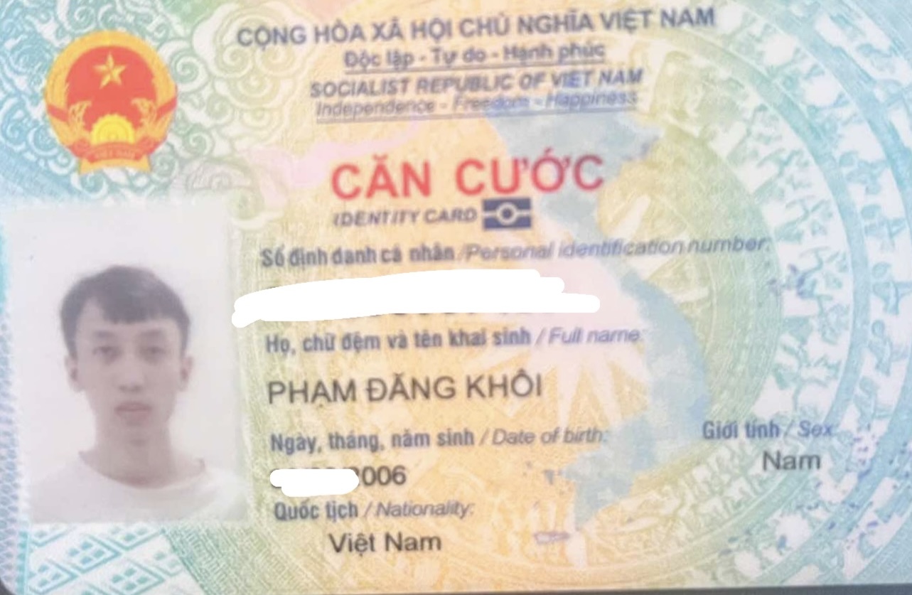 Tìm căn cước tên Phạm Hữu Thông 2006 rơi ở TP HCM