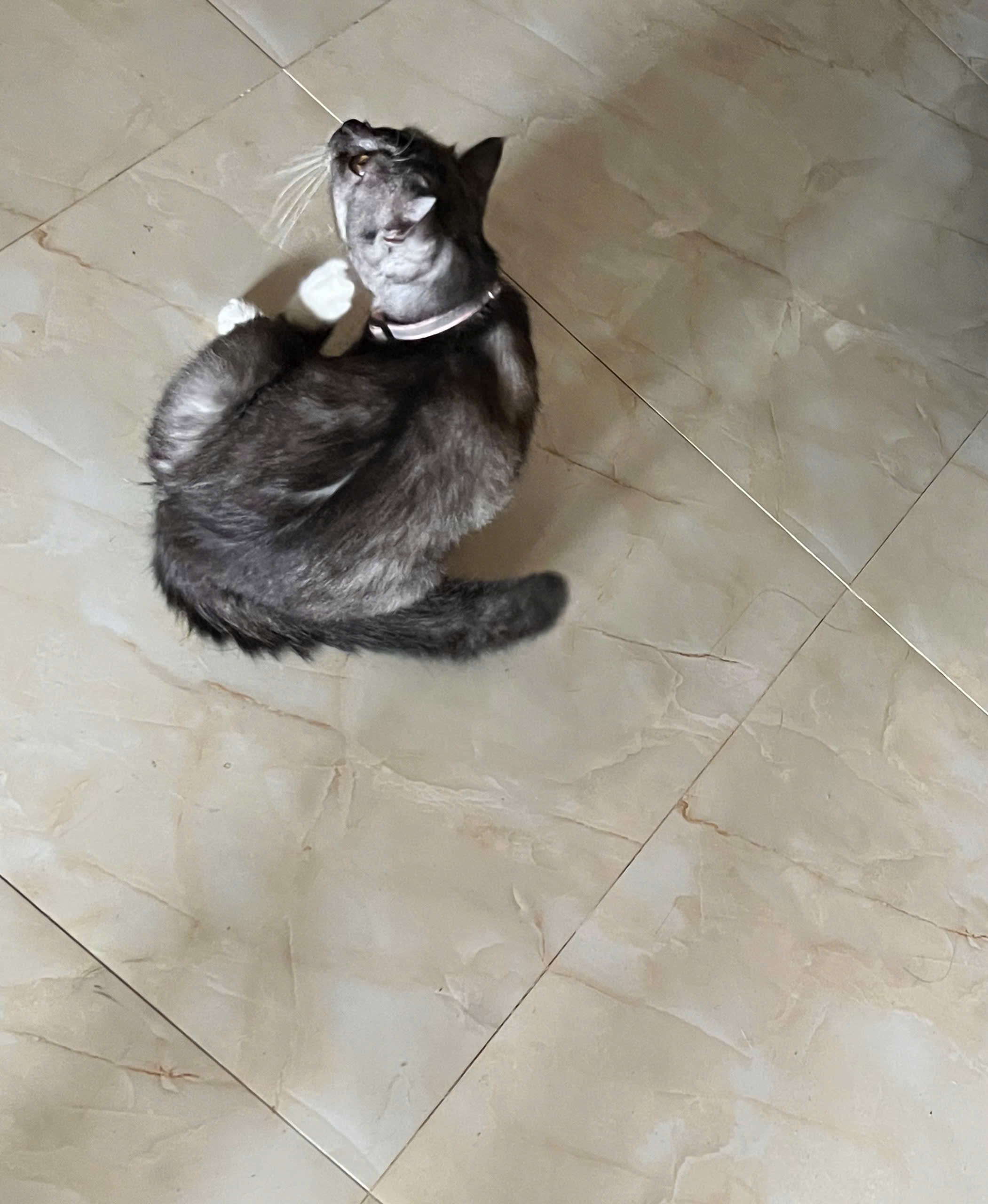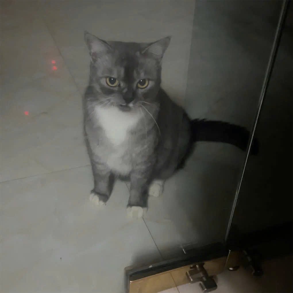• Đặc điểm nhận dạng: Miệng bị méo như đang cười nhếch mép, màu xám loan, có màu đen thẳng ở dọc sống lưng, 4 chân trắng, lông ngực trắng, nặng hơn 4 kí (đã triệt sản)