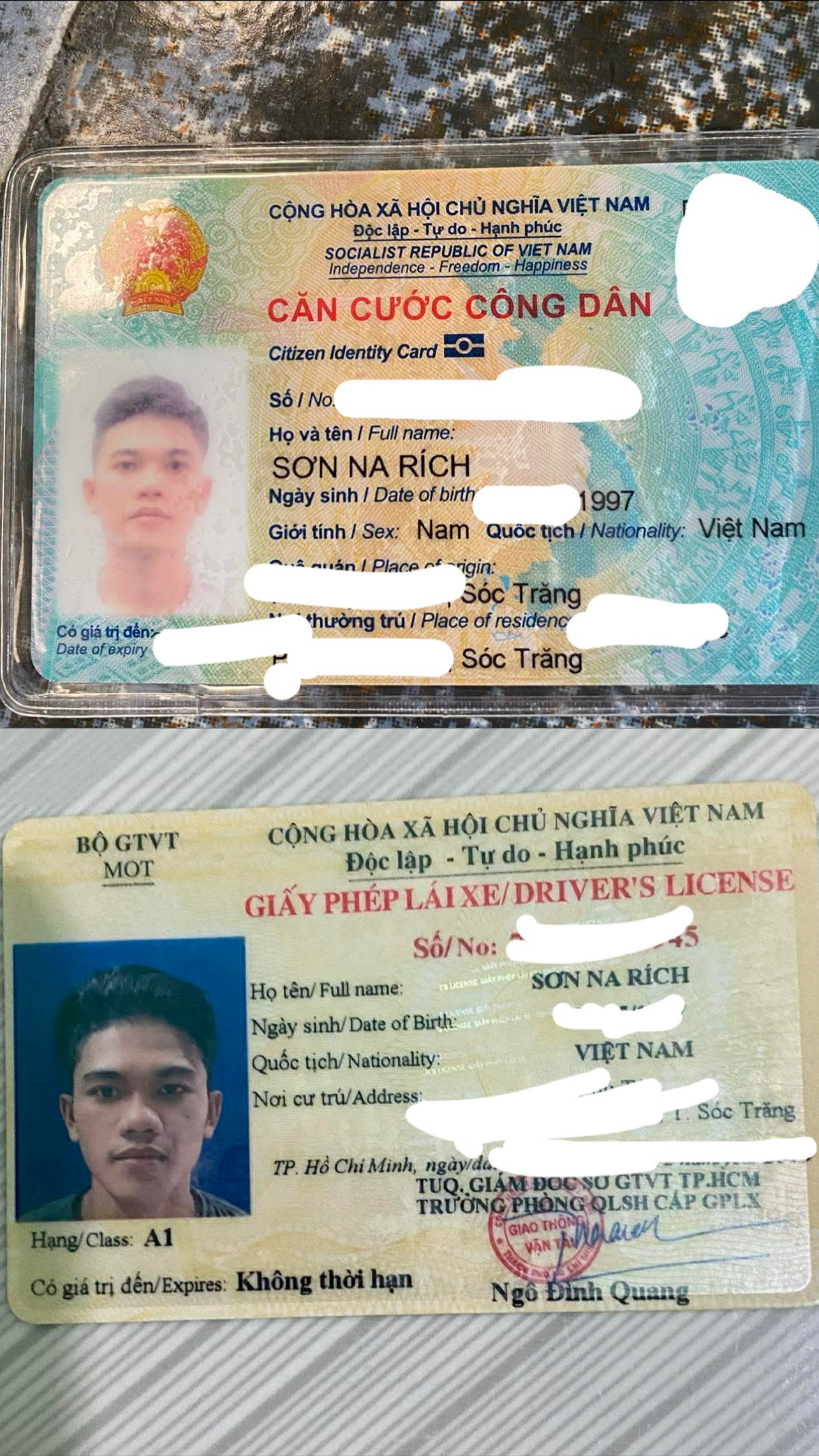 🆘 RƠI VÍ GIẤY TỜ ở TpHCM tên Sơn Na Rích 1997 Sóc Trăng