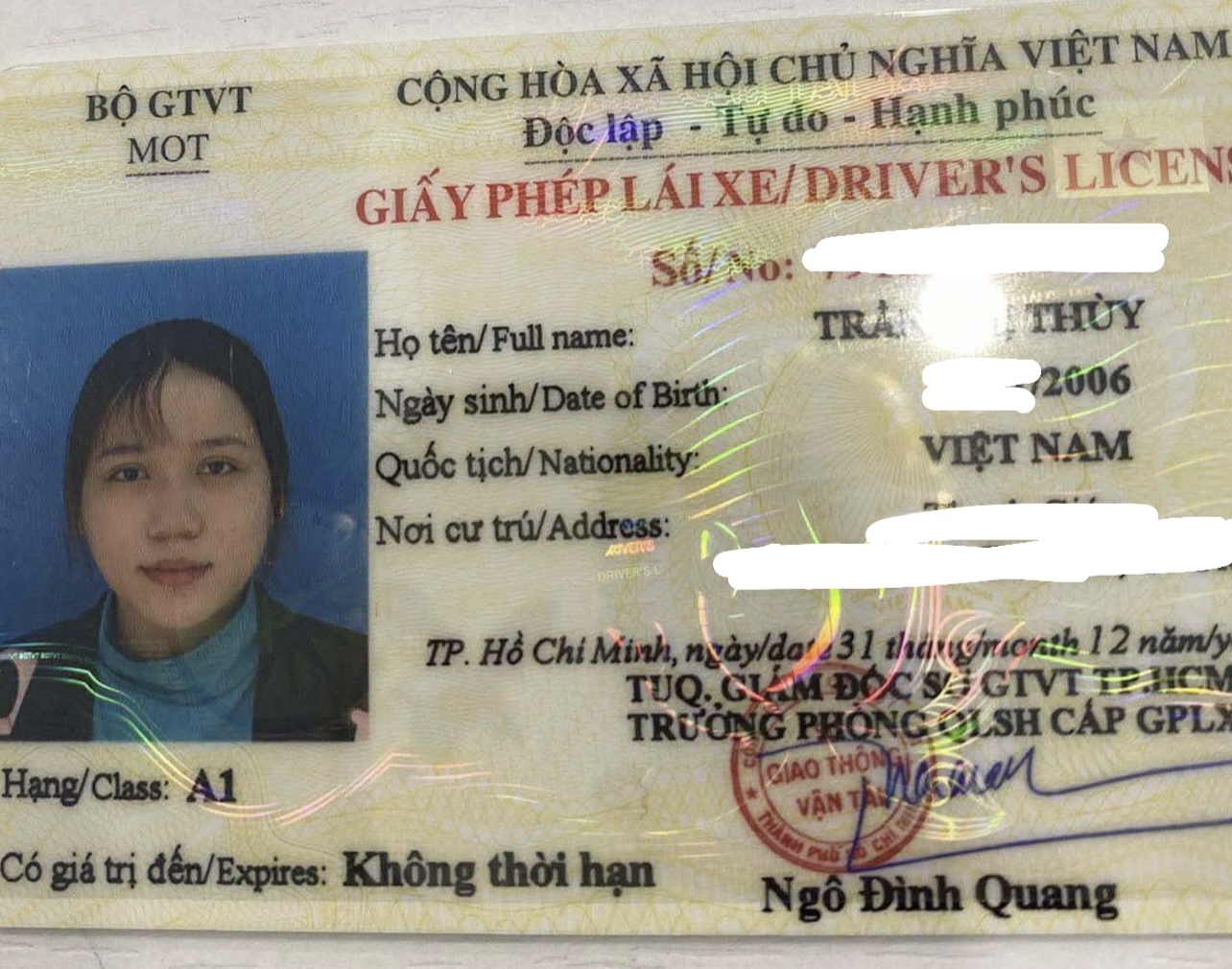 Giấy tờ gồm blx tên Trần thị Thùy