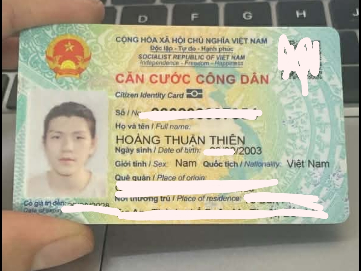 CCCD tên Hoàng Thuận Thiên