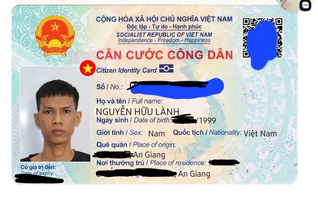 - Bên trong có các giấy tờ cá nhân mang tên Nguyễn Hữu Lành 1999 ở An Giang